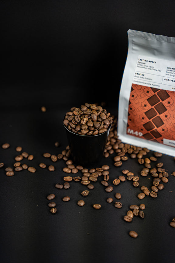 A rich and full blend. Low acids and heavy body with flavours of caramel and spice leading into a dark finish.